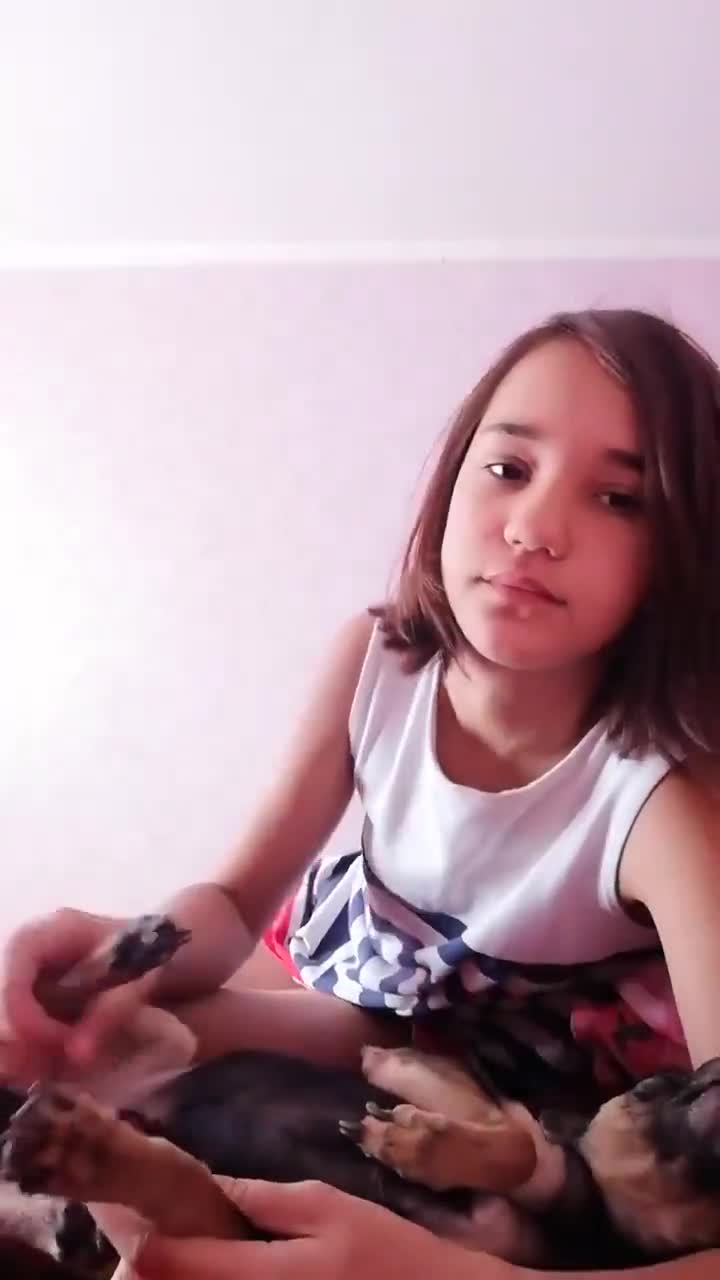 小萝莉先给狗狗亲吻,然后给狗吹鸡巴